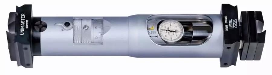 最大誤差表 (例如:2m的最大誤差28μm,沿軸向測量內徑) TESA UNIMASTER 適用于內外尺寸測量,得益于螺栓能夠適應中心或偏置的測桿, 以及實現測量力轉換使得內部或外部測量方向都有一致的結果。